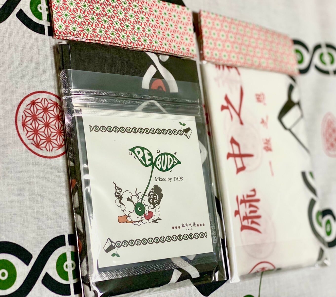 北陸を代表するダンサーSHER氏がてがけ、日本古来の文化を貴重としながら独自の世界観と発想をデザインとして展開するウェアブランド"麻中之蓬"とTA98が手を組んだプロダクト。TA98が海外某企画向けに提供したMIX音源をそのテーマから"REBUDS"と題してフィジカル化。併せて同テーマから"麻中之蓬"が独自の解釈、世界観でデザインへと転換し、ブランド代名詞ともいえる"手拭い"へと落とし込んだ。HIPHOP土壌で育まれた両者それぞれの個性が同じテーマで交差した逸品をお手元、お耳元に。「体揺らしな。」